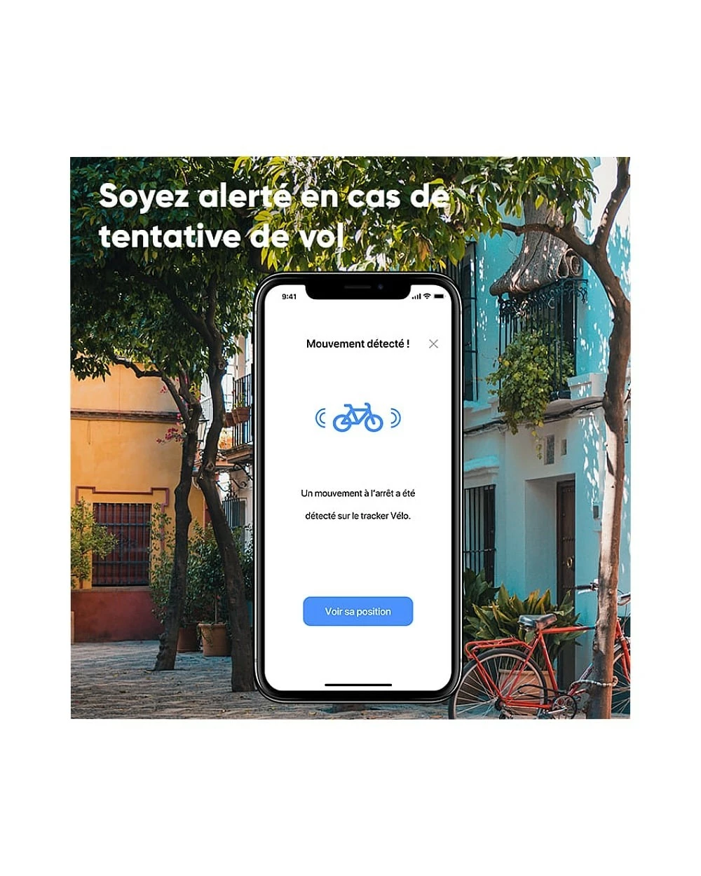 Grâce à l’application Invoxia GPS, disponible pour iPhone et smartphones Android, vous pouvez suivre la position de votre vélo en temps réel. Vous êtes évidemment notifié dès qu’un mouvement est détecté. L’application vous permet de paramétrer des règles comme des zones de sécurité dans lesquels votre vélo est autorisé à rouler (utile pour des enfants ou une flotte de vélos).