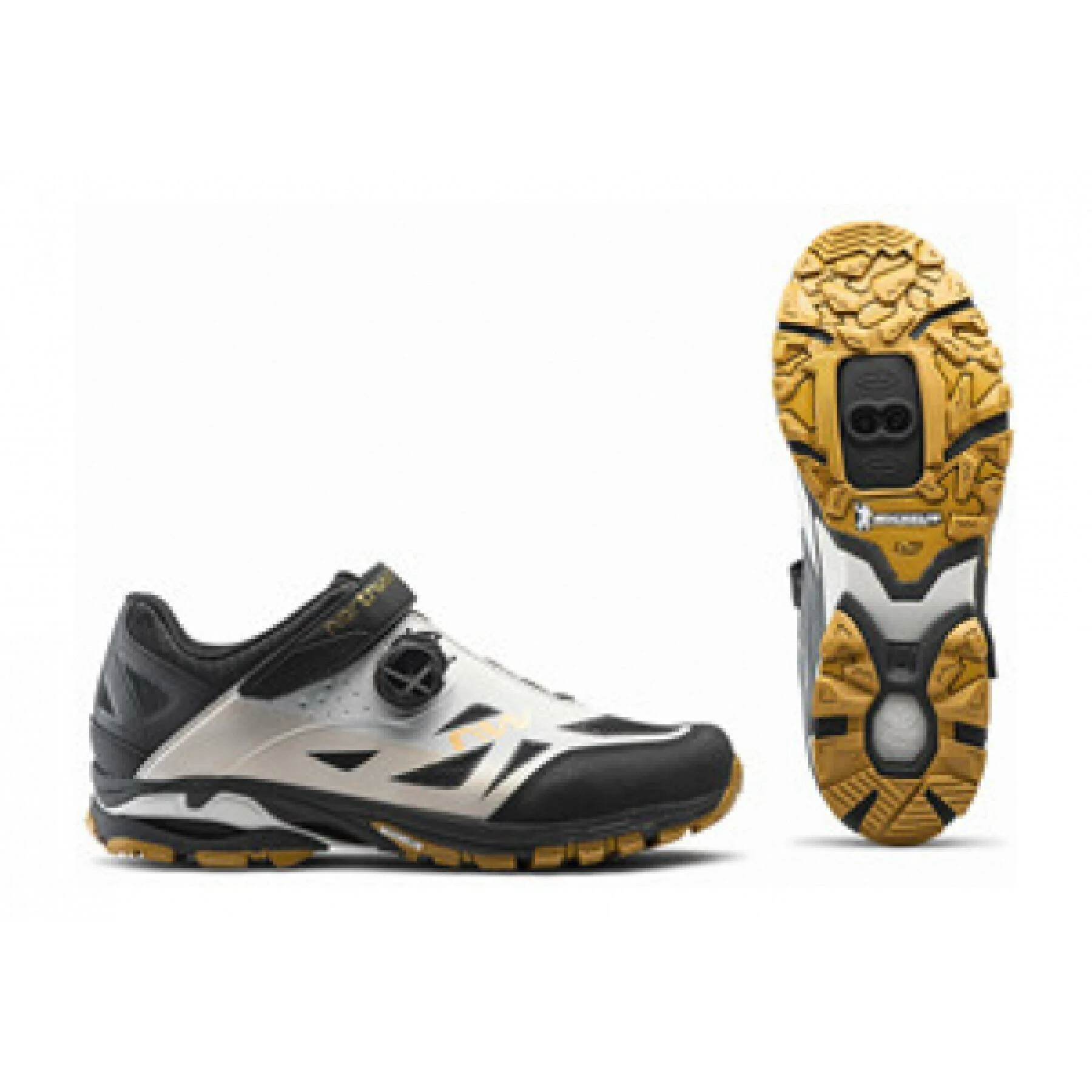 Semelle Michelin X-Crossbow avec blocs de bande de roulement autonettoyants et bords élargis pour une excellente adhérence La construction en couches thermosoudées combine plusieurs couches sans chevauchements pour une excellente ventilation et un poids réduit Les boucles de ruban en tissu doux pour les lacets réduisent les points de pression Renforts internes thermosoudés pour une protection supplémentaire Cadran SLW3 plus sangle de couverture Velcro : le seul cadran avec réglage pas à pas et relâchement complet en un seul bouton Poids : 414g