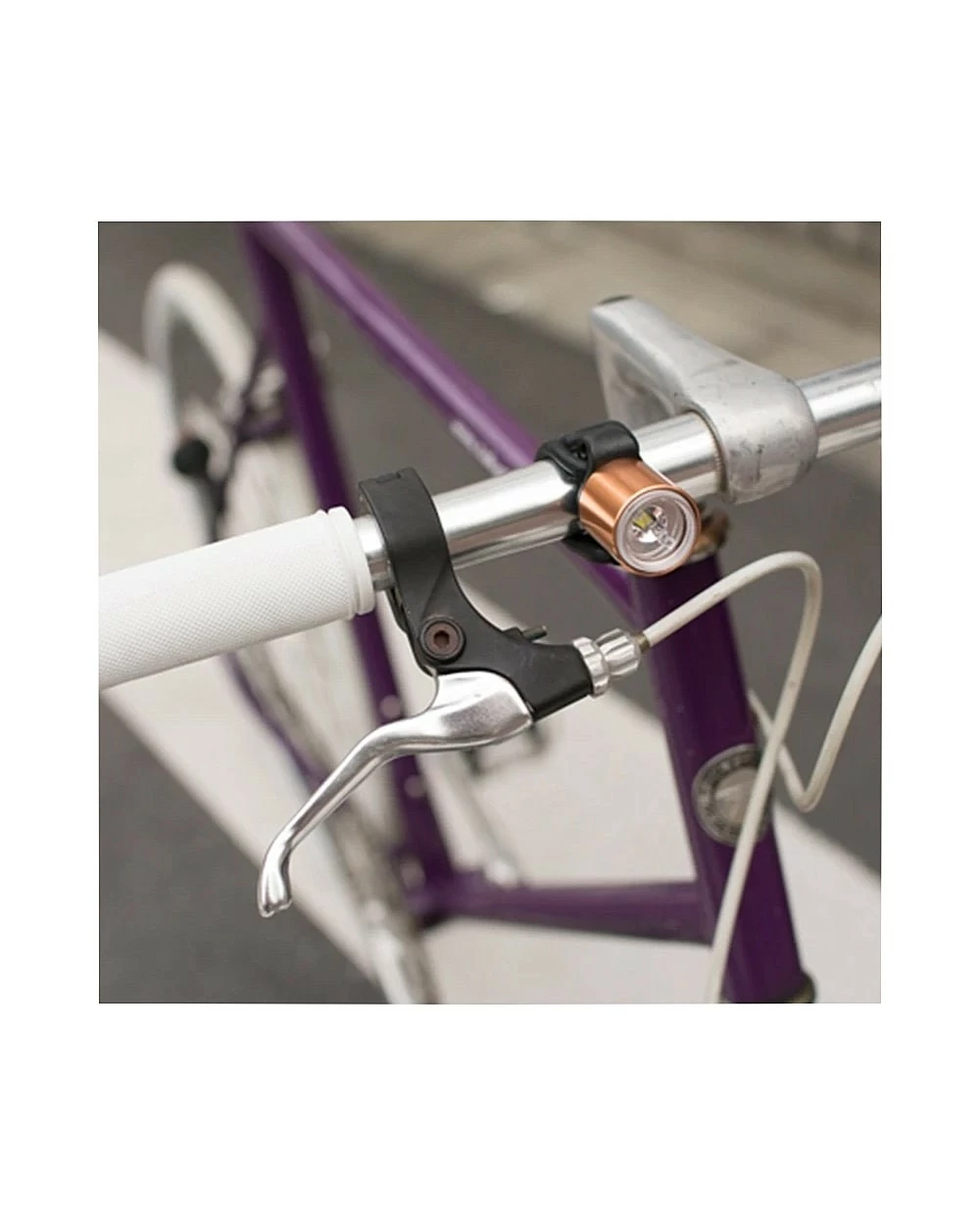 La Femto, qui existe en version avant à lumière blanche ou arrière à lumière rouge, se fixe facilement grâce à son ruban en caoutchouc. La finition cuivrée apporte une touche d’élégance à un équipement qui est traditionnellement noir et assez austère.