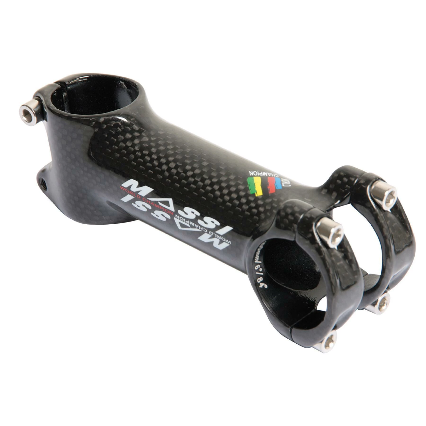 - Avec un angle de 6 degrés, cette potence est fabriquée en carbone 3K avec une finition en titane qui en fait les deux Léger Et Résistant.